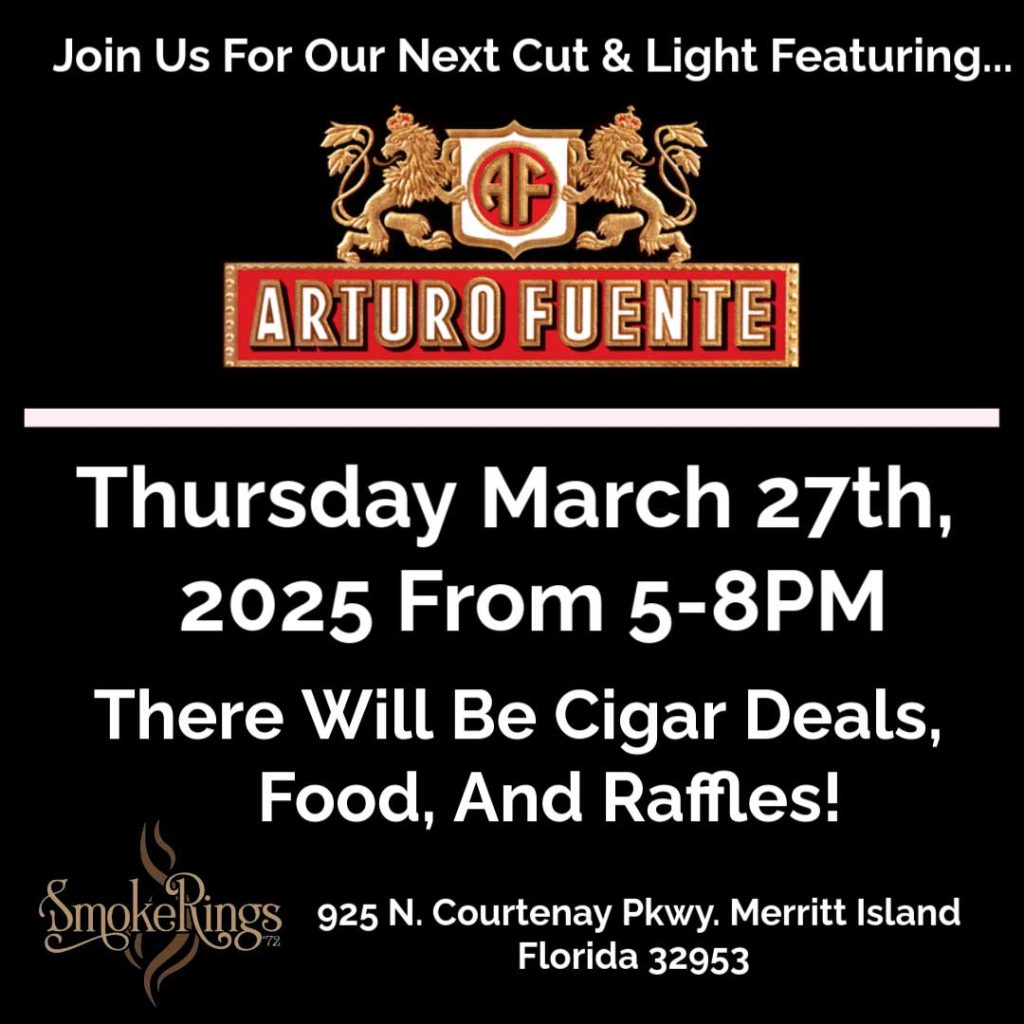 Join us for our next cut and light on Thursday March 27th from 5-8 PM Featuring Arturo Fuente Cigars!