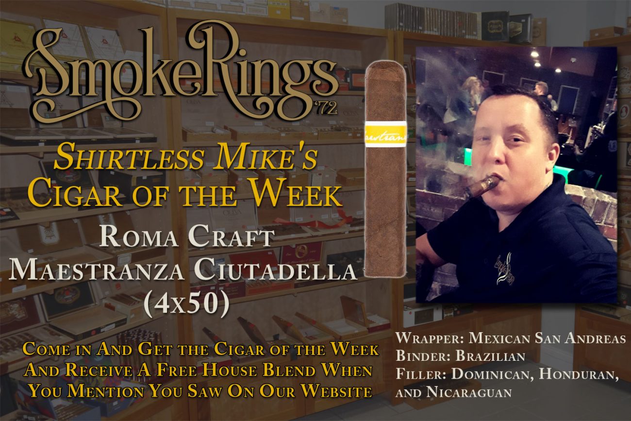 Shirtless Mike’s Cigar of the Week- April 17, 2025 – Roma Craft Maestranza Ciutadella (4×50)